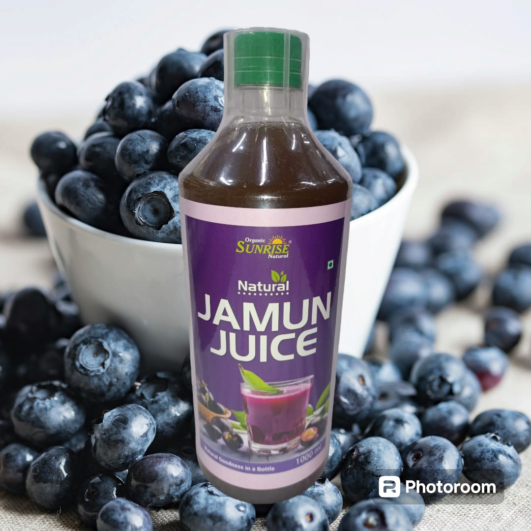 Organic Sunrise Natural Jamun Juice has other names: Jambul, Black Plum, Java Plum, India Blackberry, etc. The botanical name is Syzgium cumini. Jamun Juice acts as a diuretic and gives a soothing effect on the human digestive system. Jamun Juice has been identified to impart various benefits mainly antidiabetic properties. The fruit has rich in carbohydrates, minerals, and vitamins. It comprises glucose and fructose as principal sugars. The fruit has also rich in minerals such as manganese, zinc, iron, calcium, sodium, and potassium. The presence of oxalic acids, tannic acids gallic acid, and certain alkaloids makes it feel such an astringency taste.
